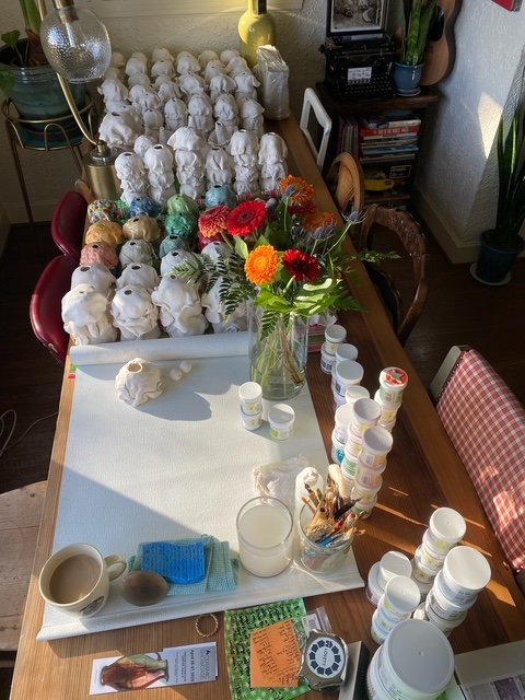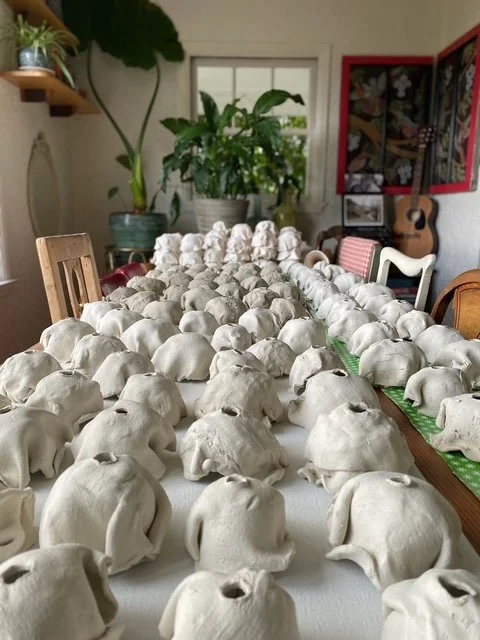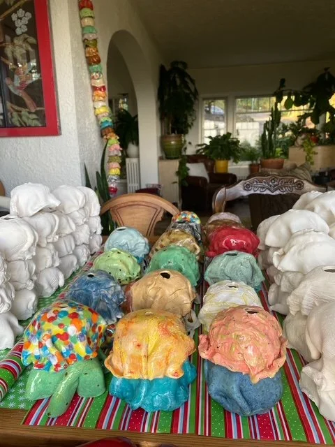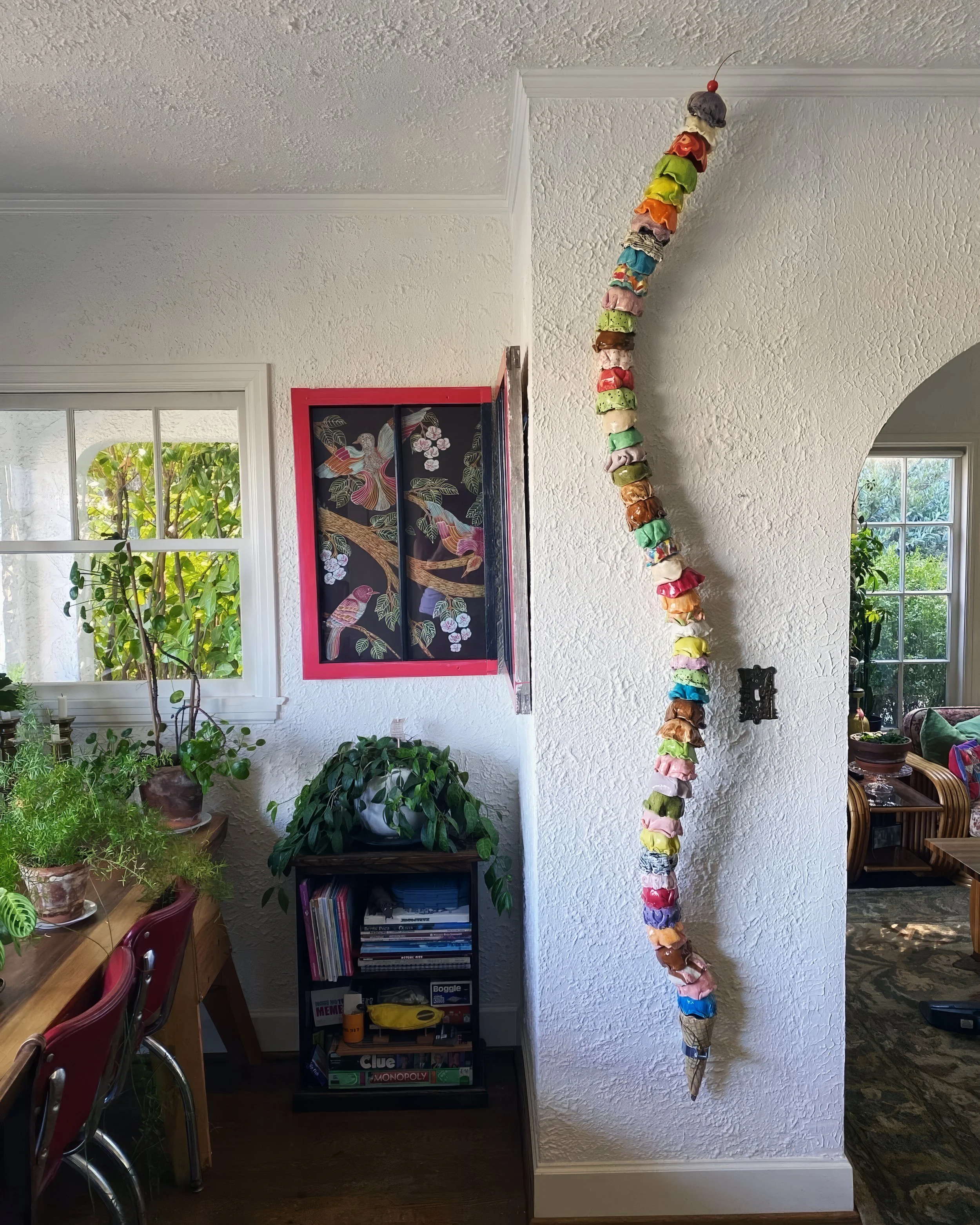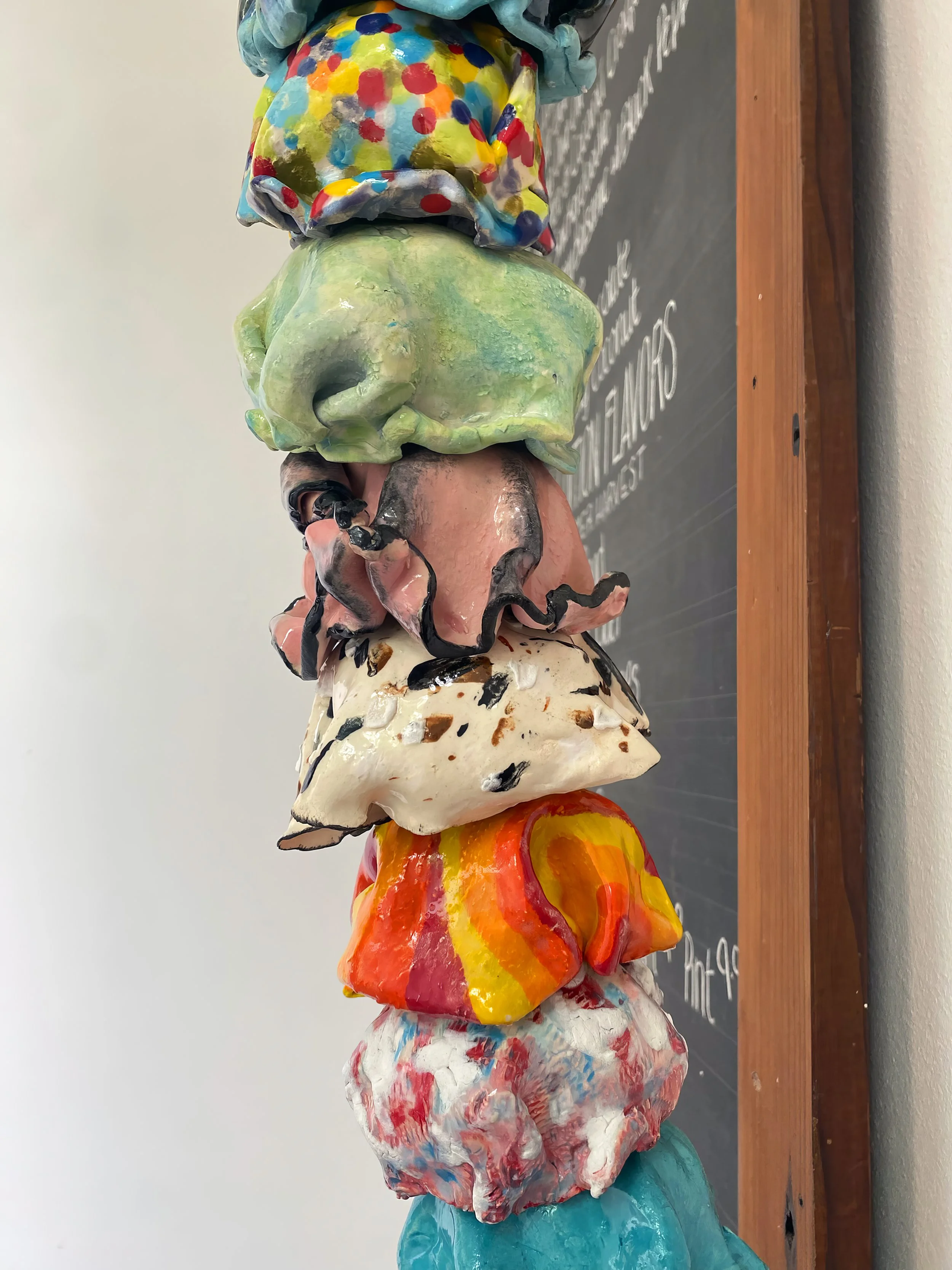 Ice Cream Our Life. The whimsically crafted, vibrantly colored, and impossibly stacked scoops on Tasha Miller's sculpture is a powerful metaphor for the precarious, fleeting, yet sweet, nature of life. This art is deeply personal: the artist invited us to customize every scoop - from "Snowy Peaks" marshmallow to "Oh Hi, Ojai" orange to “Coeur D’Alene Huckleberry" - allowing each color and flavor to represent a part of our family's life. We treasure the symbolism and delight in the whimsy.