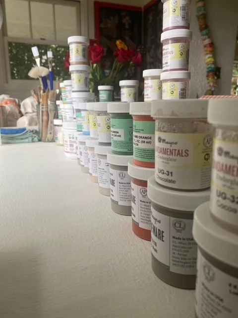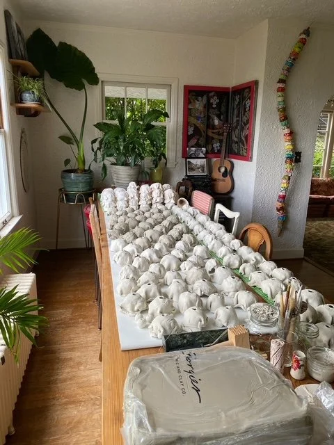 Each ceramic ice cream cone is the only one like it. These lively detailed works of art are colorful balancing acts of nostalgia, strength, happiness and hope. Tasha handcrafts each ice cream scoop using Georgies’ White Salmon (with Grog) clay, fired twice — bisque at 1945°F and after glazing, at 2232°F — then threaded along a rolled steel rod. A durable dessert for everyone.